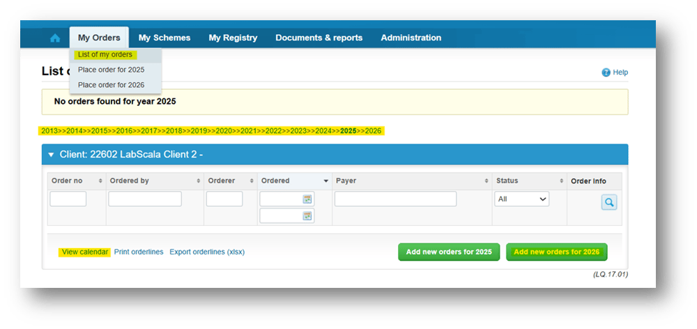 To see a visual overview of all the orders, choose the View calendar link at the bottom.