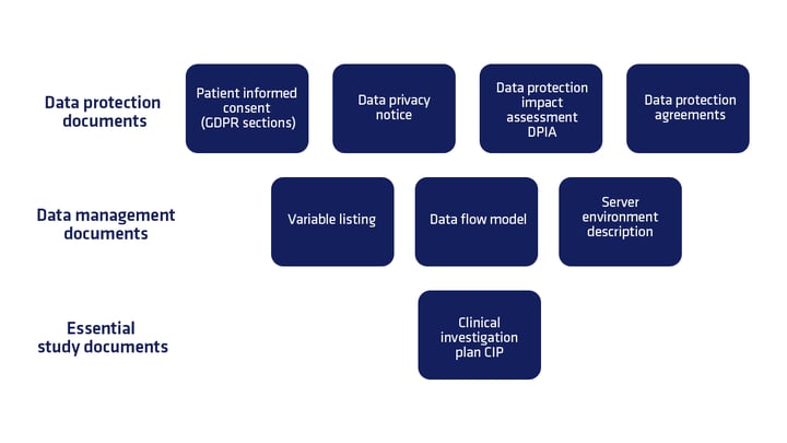 To demonstrate compliance with GDPR (”accountability”) the sponsor must maintain documents, most importantly data privacy notice, GDPR sections in the patient informed consent form, data protection impact assessment DPIA and data protection agreements. When data protection considerations are built into the clinical investigation plan and data management documents data protection has a solid foundation in the investigation.